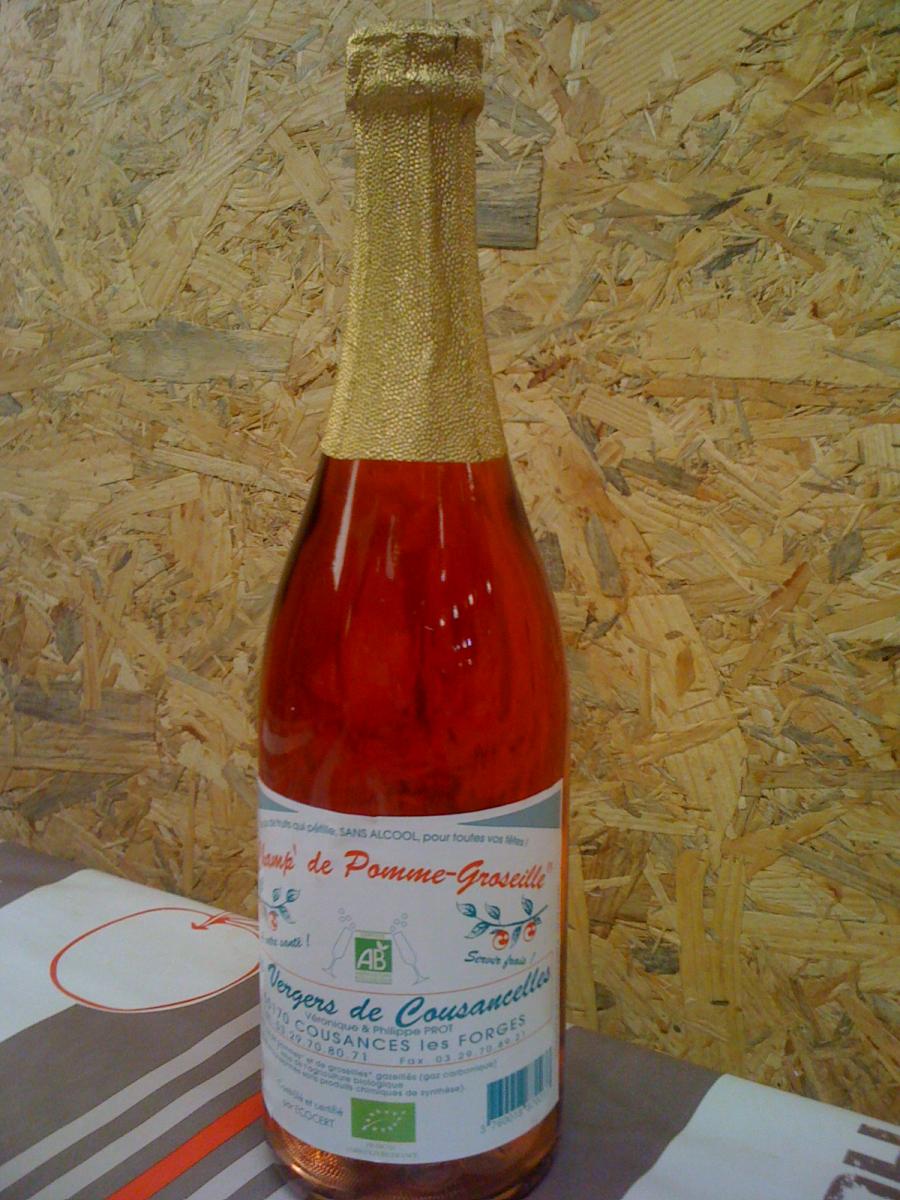 Pétillant de pomme-griotte AB sans alcool, contrôlé par Ecocert, produit dans la Meuse. Bouteille de 75 cl M