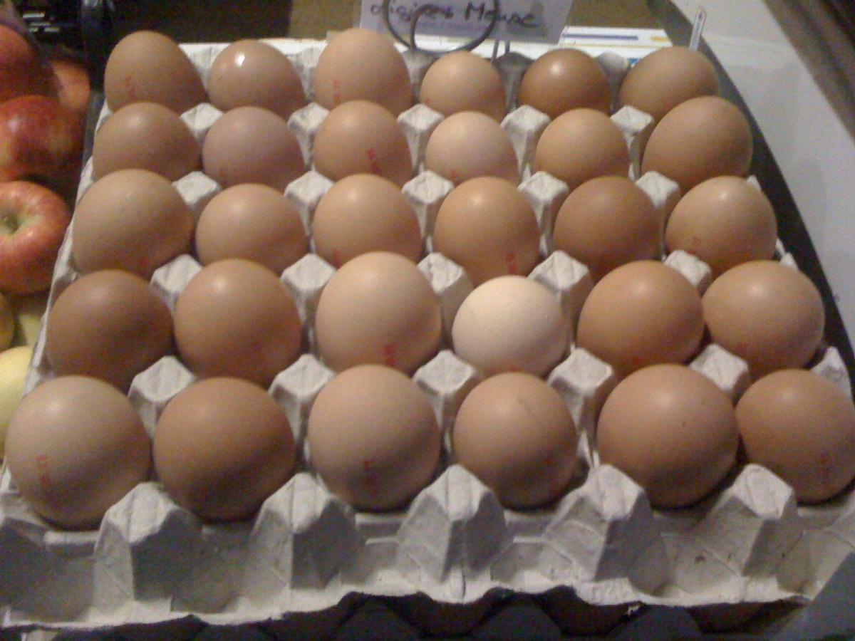 Oeufs bio pondus par nos poules bio élevées par nos soins, en plein air. Certifié bio par FR-BIO-10. Les oeufs ne sont pas calibrés, ni lavés (car l'oeuf est poreux). En effet, les poules naviguent entre l'extérieur et l'intérieur du poulailler où elles ont un grand espace mais ne s'essuient pas toujours les pattes avant de pondre ... Code oeuf : 0FR5210 (le 0 devant indique bio, FR : france, 52 : Haute-Marne, 10 est le N° d'élevage)